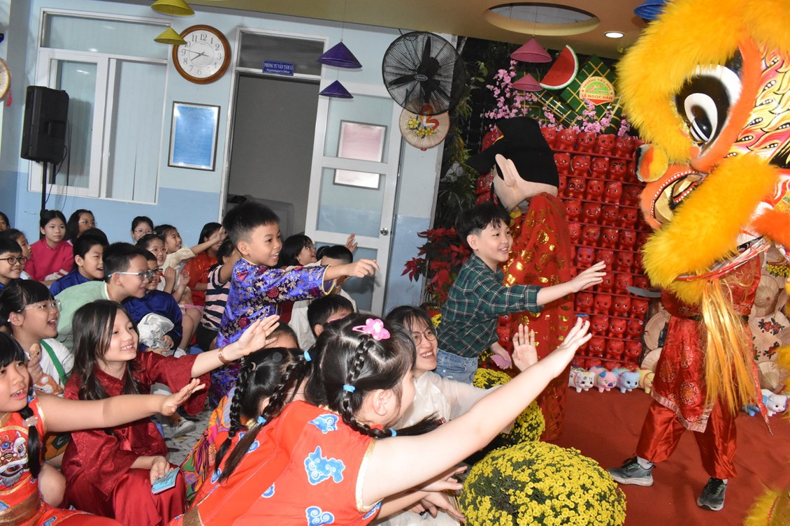 Mở màn ngày hội là tiết mục “Lân Rước Rồng Xông Đất” đầy ấn tượng đã khiến cho các bạn nhỏ đều vang lên tiếng reo hò thích thú. Tiếng trống nhịp nhàng cùng từng động tác uyển chuyển của những chú lân đã làm nóng không khí rộn ràng khai mạc ngày hội. Tiếp nối là các tiết mục văn nghệ đặc sắc với những bài hát về mùa xuân, những vũ điệu múa truyền thống pha chút hiện đại được biểu diễn với sự hồn nhiên và tự tin, như một lời chào năm mới đầy ý nghĩa của các bạn học sinh.