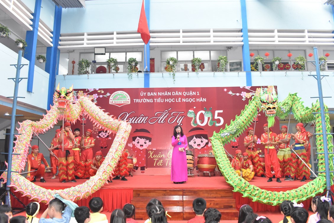 Hoà chung trong không khí rộn rã những ngày giáp Tết Nguyên đán của Xuân Ất Tỵ đang đến gần, sáng ngày 21/01/2025, sân trường Tiểu học Lê Ngọc Hân tưng bừng, rực rỡ hơn bao giờ hết trong không khí của Ngày Hội Xuân Yêu Thương 2025. Đây là một sân chơi ý nghĩa, nơi các em học sinh được khám phá nét đẹp truyền thống, thoả sức vui chơi và trải nghiệm những hoạt động sáng tạo, gắn kết tình thân ái giữa nhà trường, phụ huynh và học sinh để hiểu hơn các giá trị cao quý mà ông cha ta để lại. Đó cũng chính là ý nghĩa của ngày hội Xuân Yêu Thương với chủ đề “Xuân gắn kết – Tết tự hào” của trường Tiểu học Lê Ngọc Hân Quận 1.