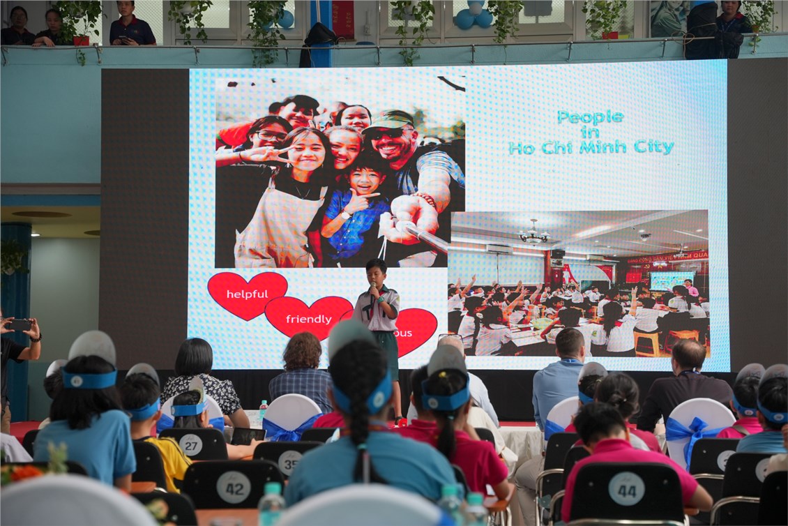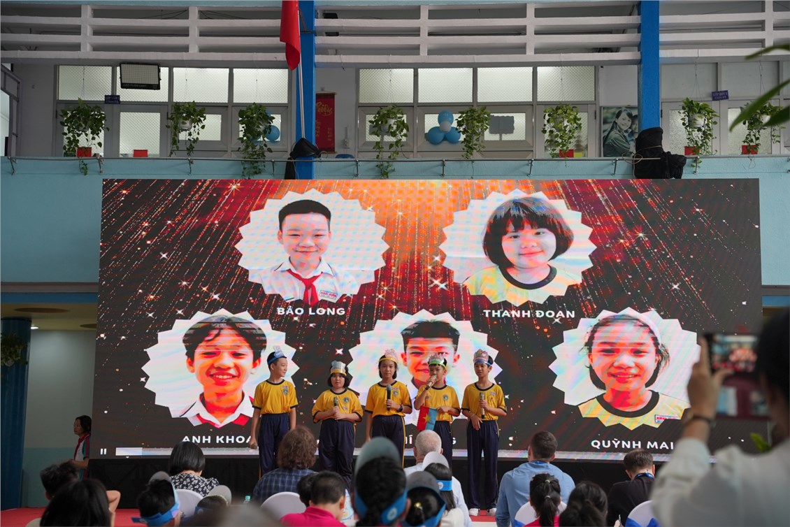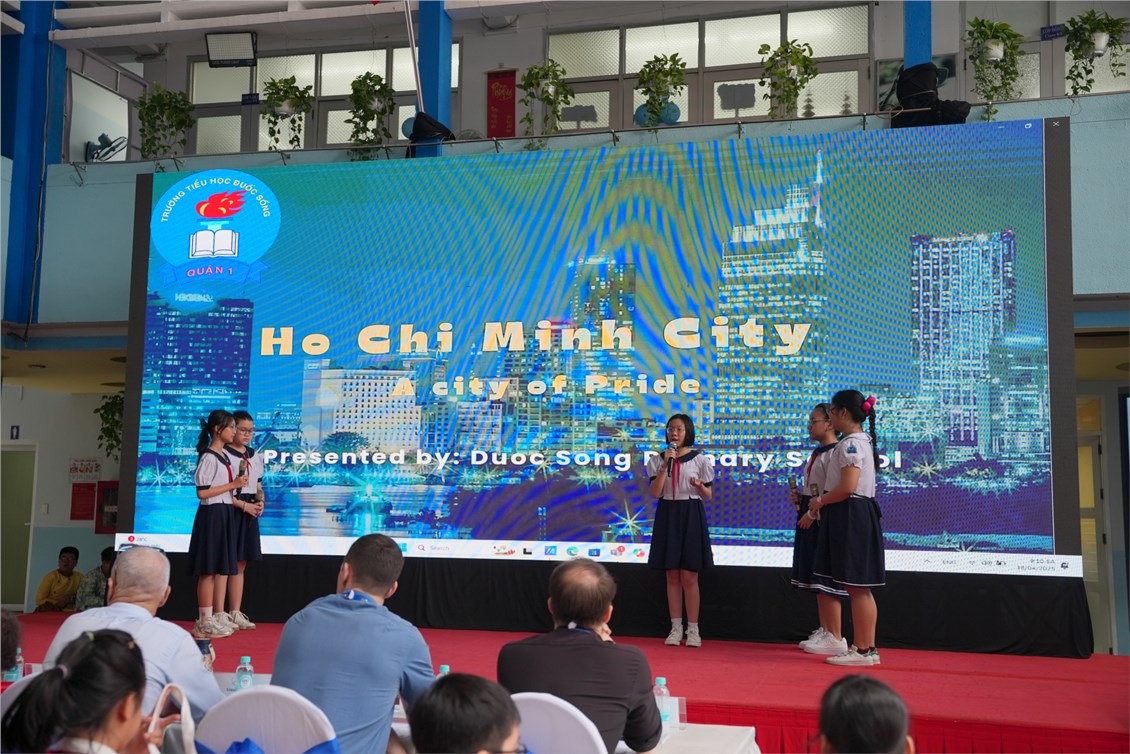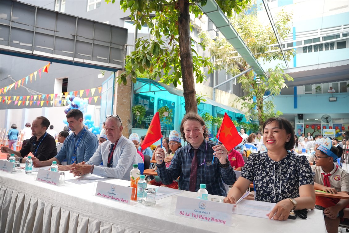 Tiếp đến, các bạn học sinh đến từ 9 trường tiểu học trên địa bàn Quận 1 được thỏa sức tranh tài sôi nổi trong 2 hội thi và được trau dồi kỹ năng nghe – nói – đọc – viết Tiếng Anh qua hoạt động trải nghiệm tại 5 trạm trò chơi: