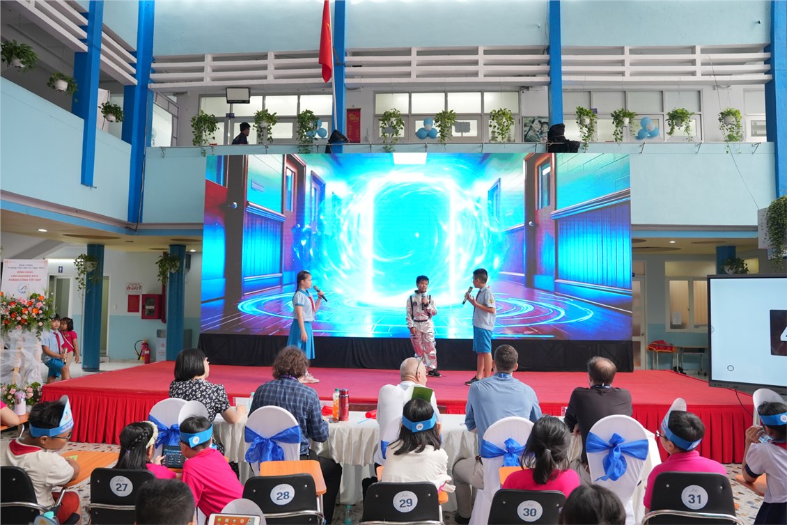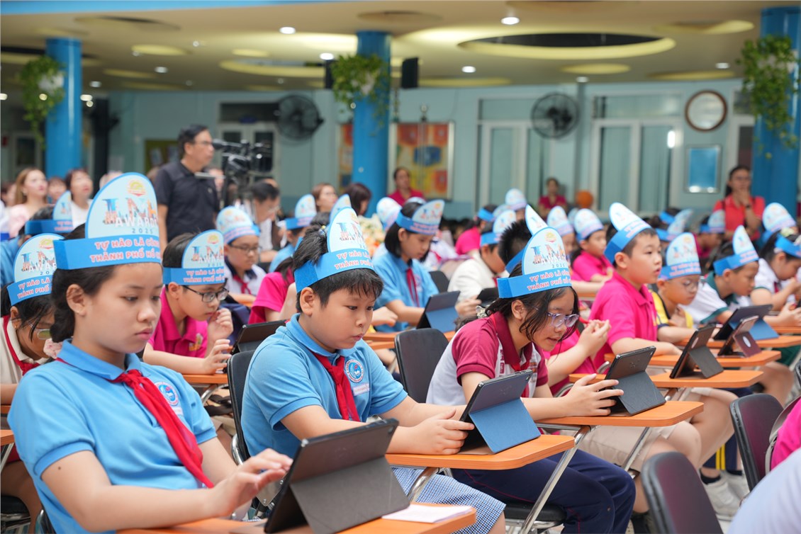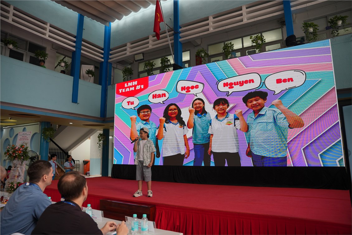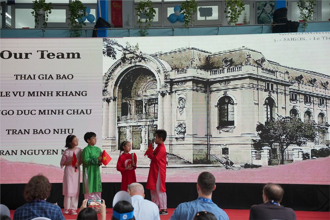 Tiếp đến, các bạn học sinh đến từ 9 trường tiểu học trên địa bàn Quận 1 được thỏa sức tranh tài sôi nổi trong 2 hội thi và được trau dồi kỹ năng nghe – nói – đọc – viết Tiếng Anh qua hoạt động trải nghiệm tại 5 trạm trò chơi: