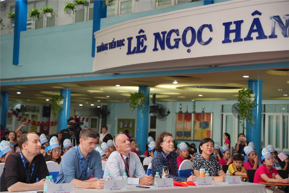 Đến tham dự Ngày hội Le Ngoc Han Awards 2025 có sự hiện diện của bà Đỗ Thị Ánh Tuyết - Trưởng Phòng Văn hóa, Khoa học và Thông tin Quận 1; bà Lê Thị Thanh Giang - Trưởng phòng Giáo dục và Đào tạo Quận 1; ông Phạm Hữu Phúc - Phó Trưởng phòng Giáo dục và Đào tạo Quận 1; bà Lê Thị Hồng Nương - Chuyên viên Phòng Giáo dục và Đào tạo Quận 1; ông Phan Đăng Trường - Phó Chủ tịch UBND P.Bến Thành; bà Bùi Thu Hiền - Phó Giám đốc đối ngoại trung tâm Anh ngữ GELA; bà Nguyễn Thị Minh Trâm - Trưởng phòng phát triển các dự án giáo dục - Trung tâm ngoại ngữ Liên Lục Địa I-CLC; bà Bùi Linh Chi - Trưởng Ban đại diện Cha mẹ học sinh; ông Lai Hoàng Chương - Phó Ban đại diện Cha mẹ học sinh; bà Nguyễn Thanh Uyển - Phó Ban đại diện Cha mẹ học sinh; bà Nguyễn Bá Ngọc Hân - Phó Ban đại diện Cha mẹ học sinh; cùng các ông bà là Ủy viên Ban đại diện Cha mẹ học sinh Trường Tiểu học Lê Ngọc Hân.